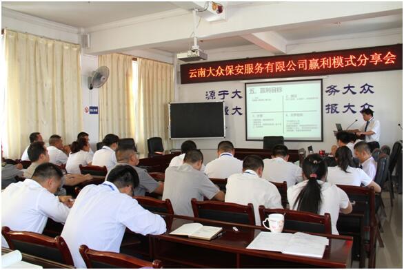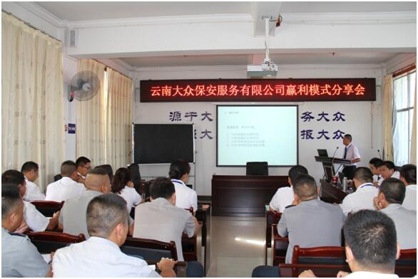 2015年7月4日上午9:00時,大眾保安公司在公司四樓會議室開展了“贏利模式”培訓分享會,會議由公司本部、安防分公司全體行政管理員工和思茅區(qū)保安服務(wù)中心大隊長共66人參加。