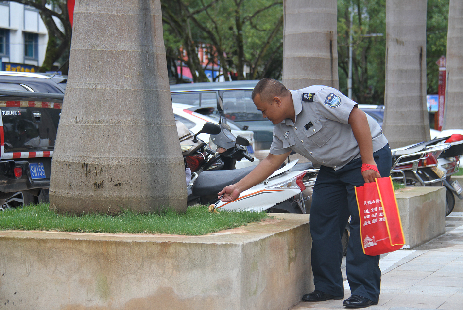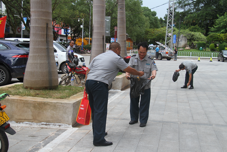 當天下午,他們從思茅世紀廣場出發(fā),沿振興大道、寧洱大道對人行道上的垃圾進行清理;對影響市容市貌的小廣告做了清楚;對個別不嚴格遵守“門前五包”責(zé)任制的商家進行了勸導(dǎo)。